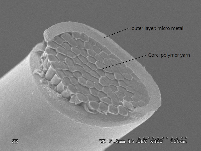 Cross section view of the MMC yarn. The unique and patented structure can provide: