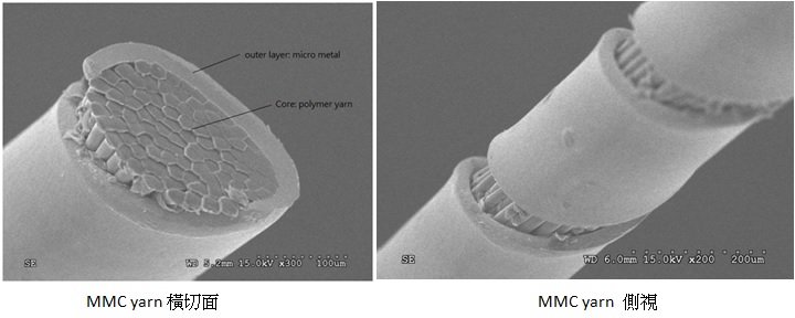 鑫源公司整合紡織與電子工程的知識與使用者經驗而發明的微米金屬導電紗 (Micro Metal Conductive Yarn, MMC yarn),完全解決了上述的2大問題,是世界上唯一電子級(電阻為4.0~0.9 ohm/m)、可直接錫焊 (solderable) 的導電紗。