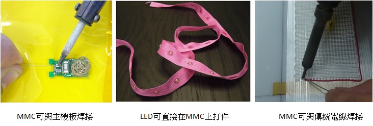 2. 無法錫焊,因為材料性質的關係,目前市售導電紗或紡織品均無法與電線、電子元件或PCB直接錫焊,意即無法與電子加工整合,後續也產生了電器安全保障與安全認證 (例如UL, CE, FDA及 BSMI)上的困難。